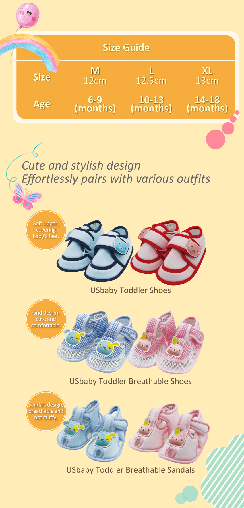 - Soft sole design, soft and comfortable