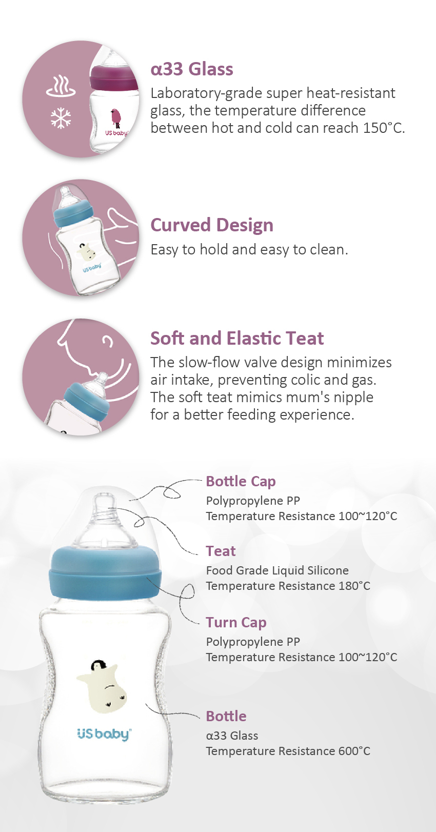 - Using α33 Glass, laboratory-grade super heat-resistant glass