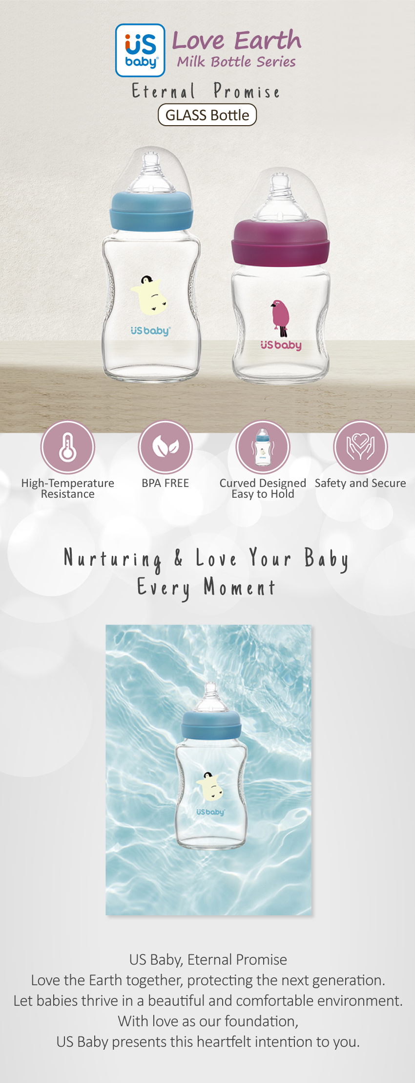 US Baby Wide Neck Glass Bottle (240ml)